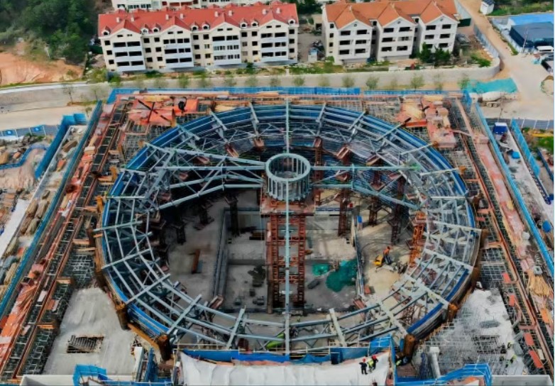 Нещодавно проект Dongyou Kongtong Scenic Area, який є ключовим проектом культури та туризму в місті Яньтай. Здійснено важливу віху будівництва — підйом кільцевої ферми театрального центру. На місці, коли 650-тонний гусеничний кран повільно піднімався, 24-тонна кругла балка ферми в центральній частині театру була точно піднята. Цей театр, який збирається виставити східний міф, офіційно відкрили свій “сталевий хребетЦей ключовий процес знаменує важливий поетапний прогрес у будівництві металоконструкцій і створює сприятливі умови для впорядкованого просування всього проекту.