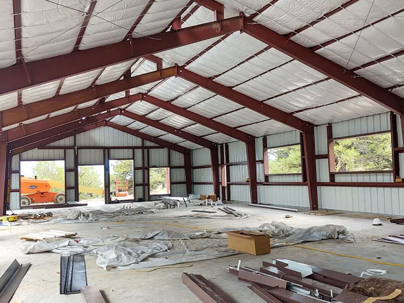 Покрівля та зовнішня обшивка:Після того, як сталева рама буде завершена, встановлена ​​система покрівлі, як правило, складається з ізольованих металевих панелей або одношарових мембранних матеріалів. Зовнішні стіни, якщо вони включені в дизайн, також встановлюються за допомогою таких матеріалів, як металеві панелі або цегли.