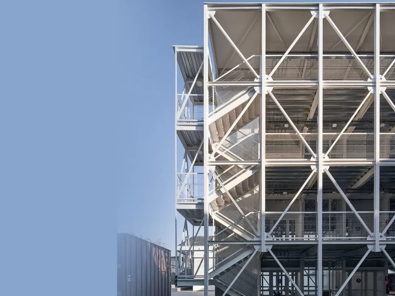 Матеріали: сталеві балки, колони та брекети утворюють основну структуру будівлі. Ці матеріали часто вибираються на основі їх міцності, довговічності та економічної ефективності.